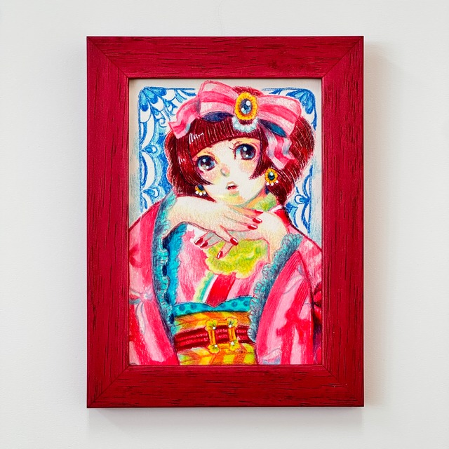 【発送】は【入金完了後から3週間以内】です。 【作品何種何点(1カート)】でも【送料¥650】です。 【1/25(日)20時を最後に】当ページで購入できなくなります。 ______________________ 手描きの原画で一点物です。 名古屋にある老舗の高山額縁店が、作風に合わせた額縁を厳選。※写真の額縁です ハイクオリティな額装原画。 スマホ片手に画像を見ながら、部屋のどこに飾るか見渡すと、より楽しめます! ▼仕様 額縁の内側表面:アクリル板 サイズ:原画 縦154×横107mm + 額縁幅 設置方法:額裏に壁掛け紐付き。または、イーゼルなどで置き展示も可 ▼情報 額縁:https://nayabashi-gakubuchi.jp/ 主催:https://x.com/tsukushiso 作家:https://x.com/1696suisaisakka