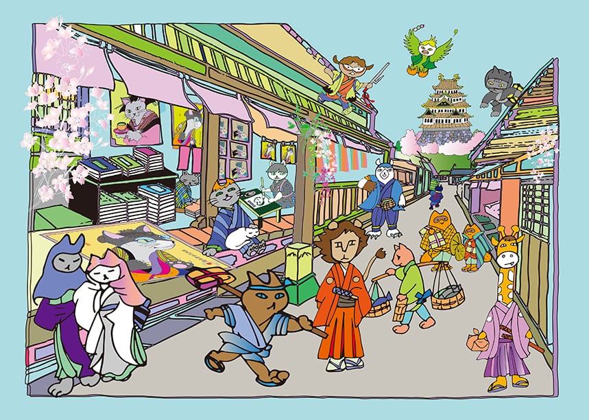 【複製画】111.ニャンコ丸/ 春の城下町(1点限定)
