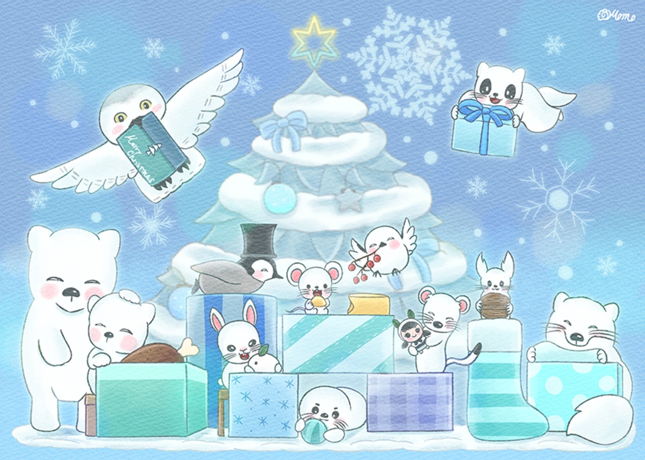 【複製画】105.はなもも/ 白い仲間たちのプレゼント開封大会(1点限定)
