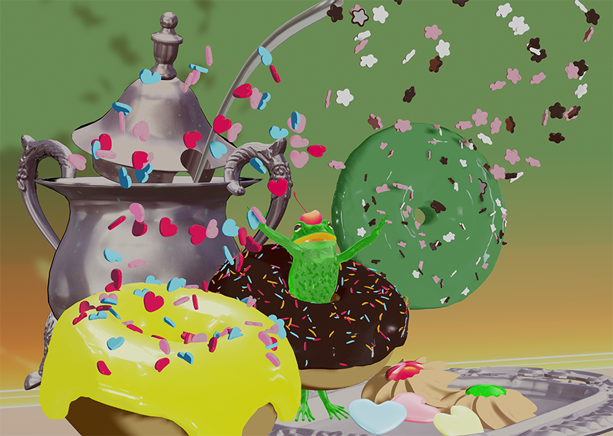 【複製画】96.蛙稲 晴子/お菓子なカエルの冬眠パーティー(1点限定)